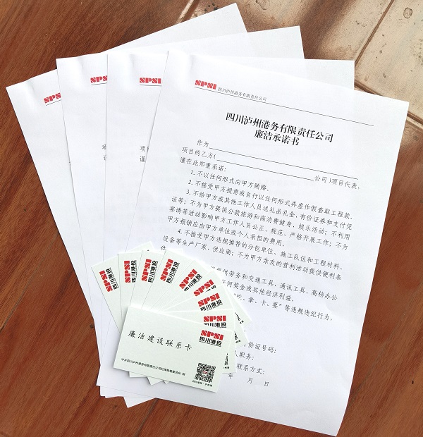 ? ? ? ?聯(lián)系卡上印制了廉潔提醒語(yǔ),公布了廉潔舉報(bào)電話(huà)及郵箱,向承建方(供貨方)遞出聯(lián)系卡,也遞出了公司做好廉潔從業(yè)工作的責(zé)任擔(dān)當(dāng);廉潔承諾書(shū)向承建方(供貨方)鄭重說(shuō)明了應(yīng)履行的六條義務(wù),與承建方(供貨方)簽訂承諾書(shū),進(jìn)一步延長(zhǎng)了公司廉潔管理工作鏈條,筑牢了公司在工程建設(shè)和招采方面廉潔管理工作防線(xiàn)。